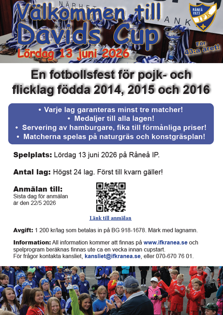 Vid frågor, kontakta IFK Råneås kansli: 070-670 76 01, kansliet@ifkranea.se.